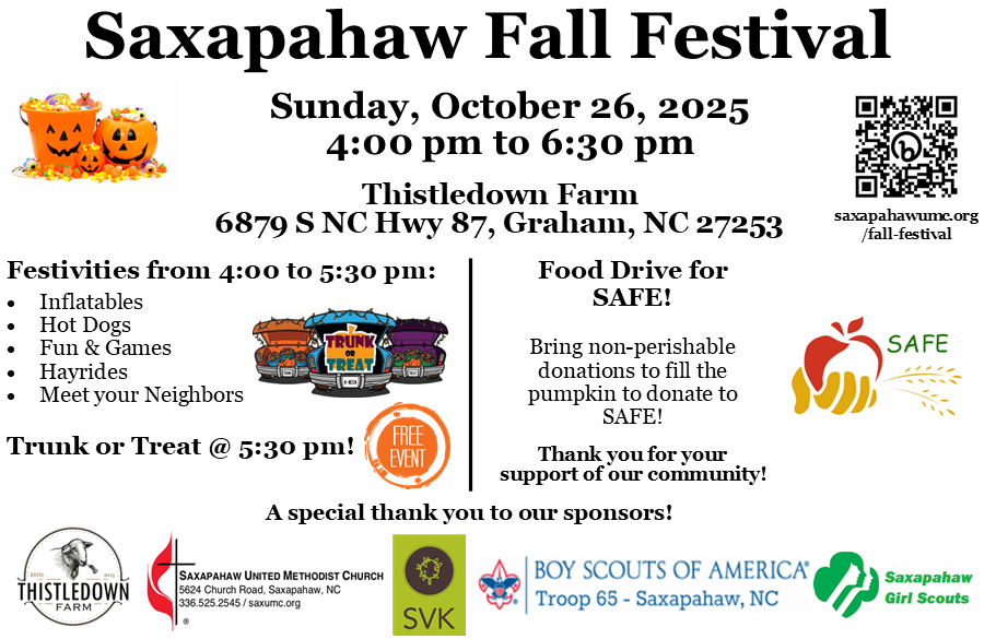 Thank you for your loving service to the Saxapahaw Community!